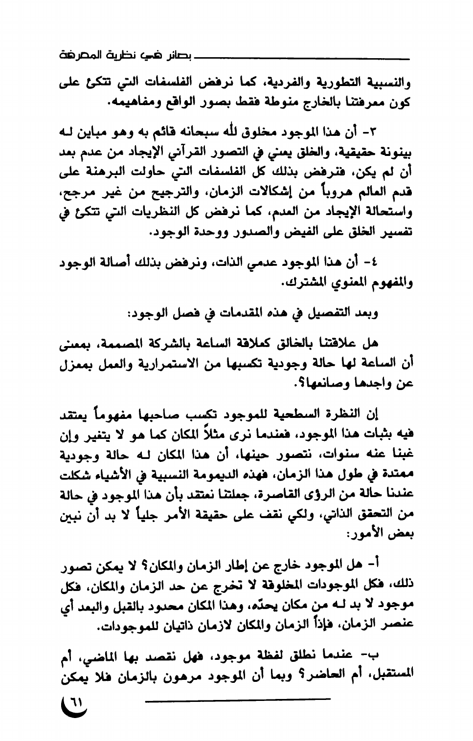 نام کتاب : بصائر في نظرية المعرفة نویسنده : الشيخ معتصم السيد أحمد    جلد : 1  صفحه : 61