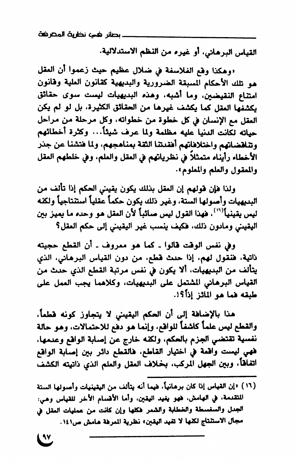 نام کتاب : بصائر في نظرية المعرفة نویسنده : الشيخ معتصم السيد أحمد    جلد : 1  صفحه : 97