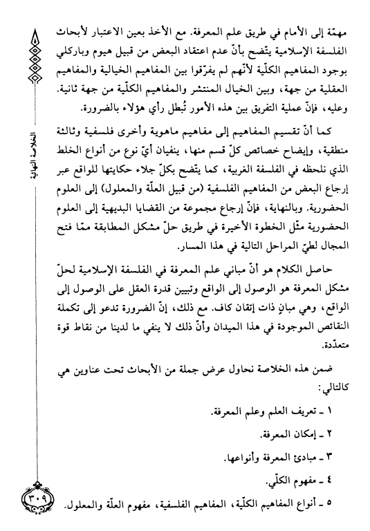 إطلالة على نظرية المعرفة، في الفلسفة الإسلامية