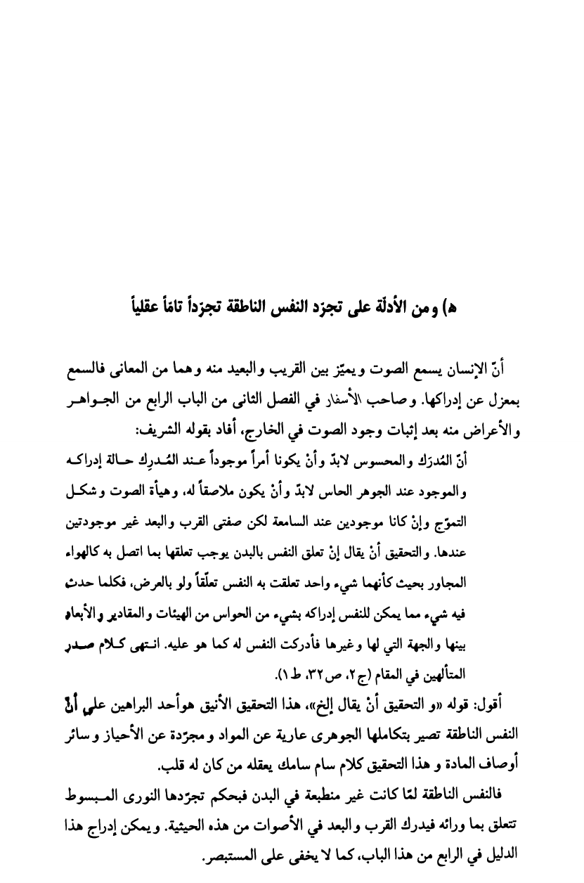 الحجة البالغة، على تجرد النفس الناطقة