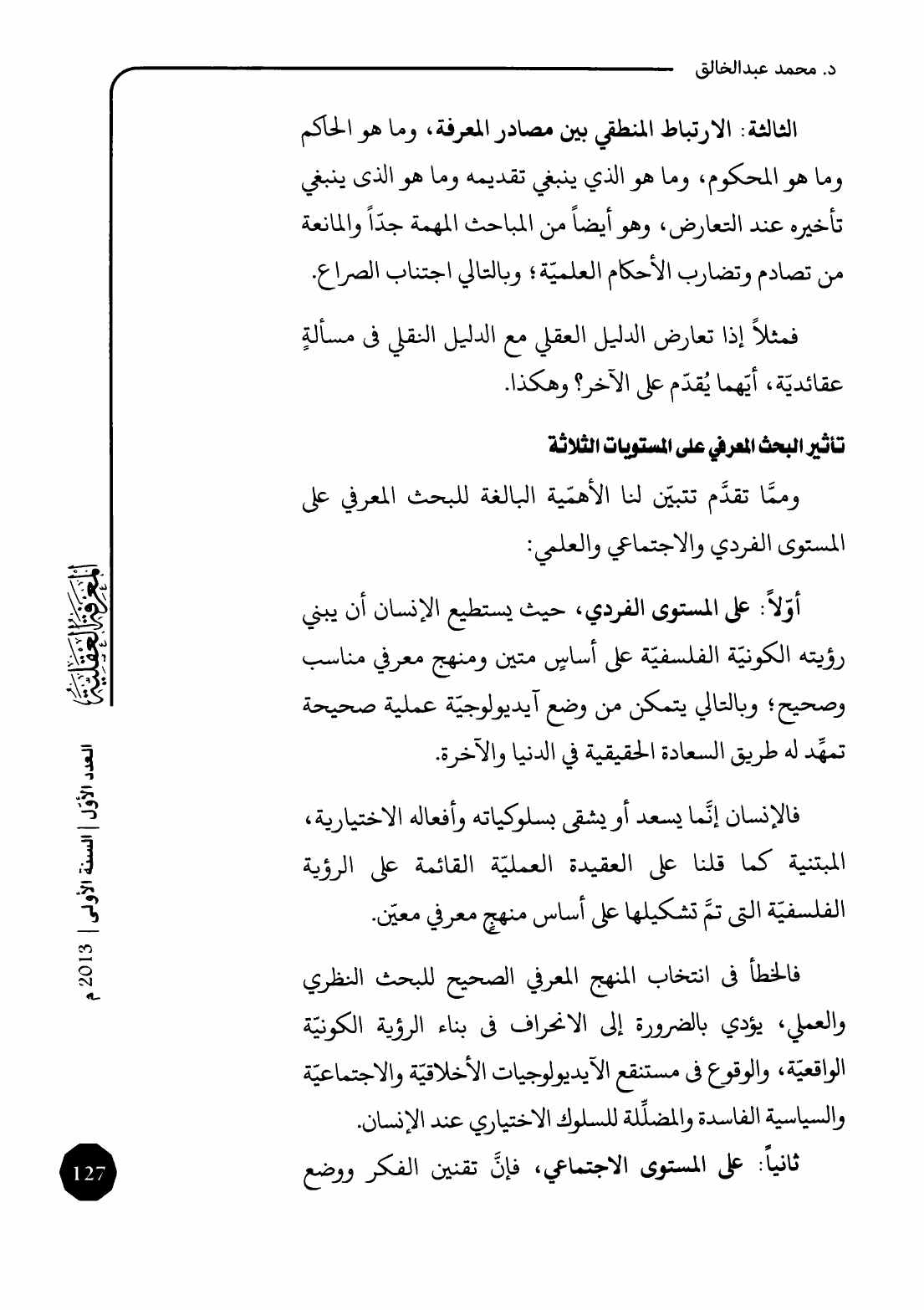 مجلة المعرفة العقلية، العدد الأول