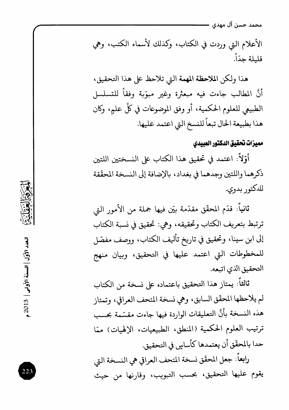 مجلة المعرفة العقلية، العدد الأول