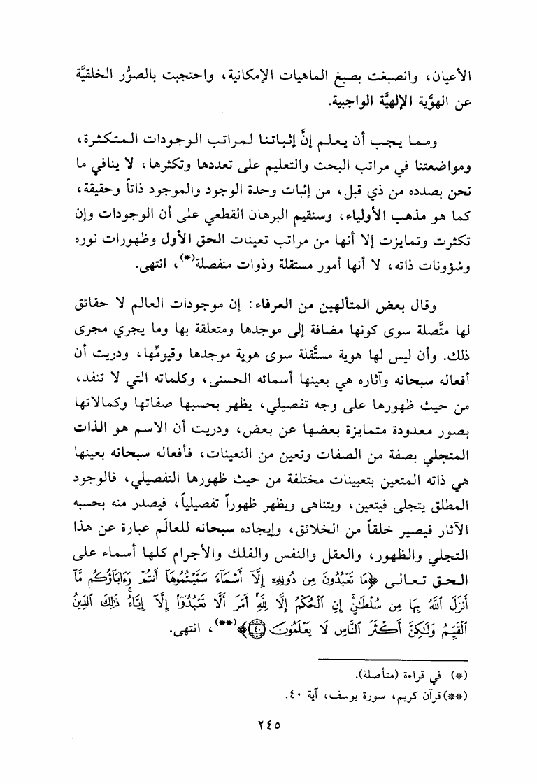 قرة العيون في الوجود والماهية