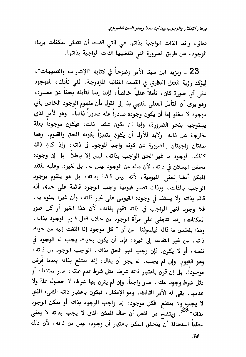 برهان الإمكان والوجوب بين ابن سينا وصدر الدين الشيرازي