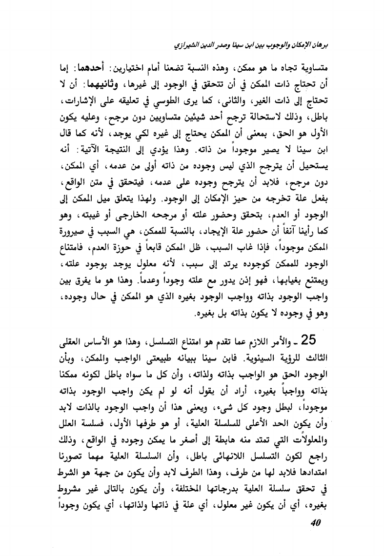 برهان الإمكان والوجوب بين ابن سينا وصدر الدين الشيرازي