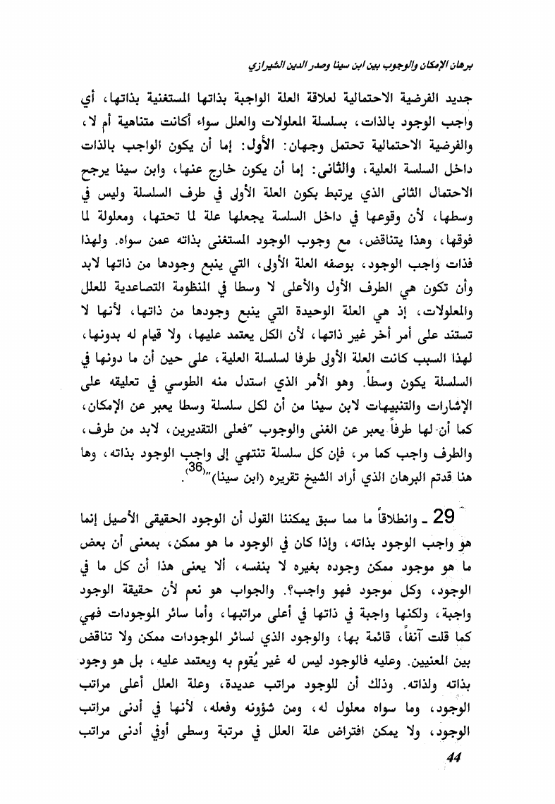 برهان الإمكان والوجوب بين ابن سينا وصدر الدين الشيرازي