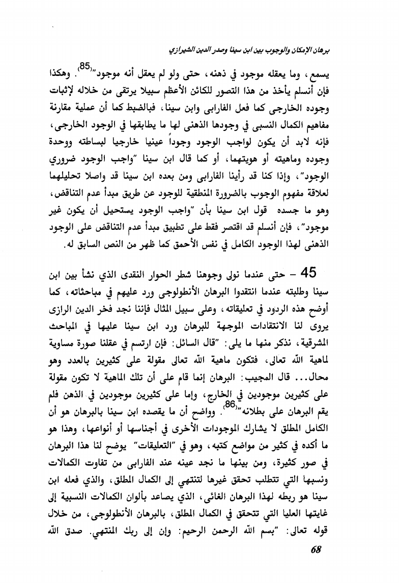برهان الإمكان والوجوب بين ابن سينا وصدر الدين الشيرازي