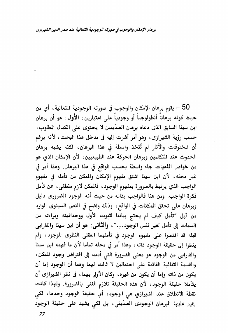 برهان الإمكان والوجوب بين ابن سينا وصدر الدين الشيرازي