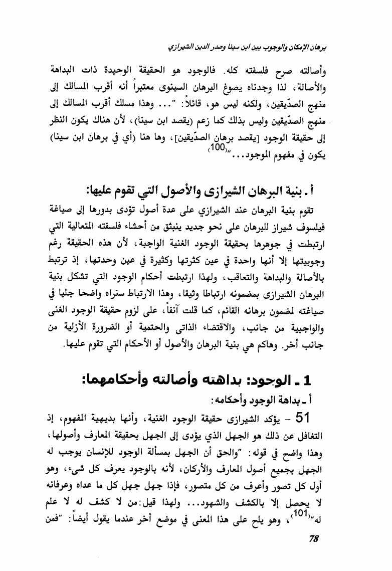 برهان الإمكان والوجوب بين ابن سينا وصدر الدين الشيرازي