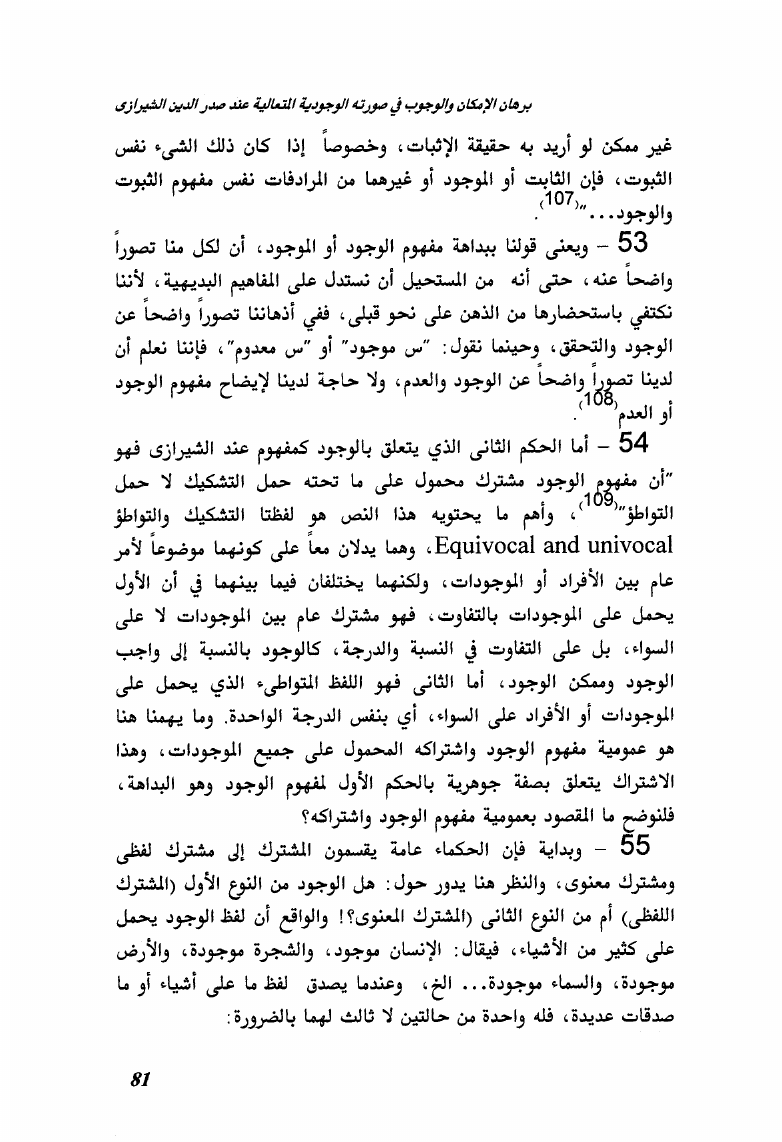 برهان الإمكان والوجوب بين ابن سينا وصدر الدين الشيرازي