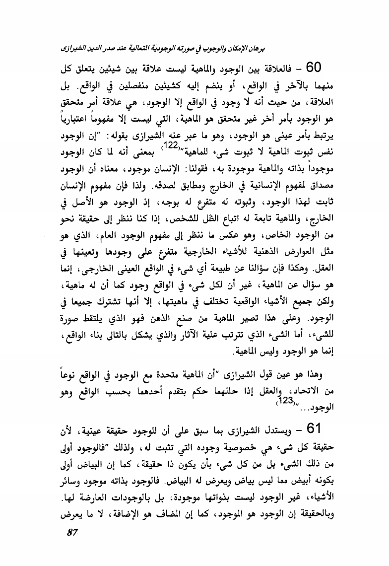 برهان الإمكان والوجوب بين ابن سينا وصدر الدين الشيرازي