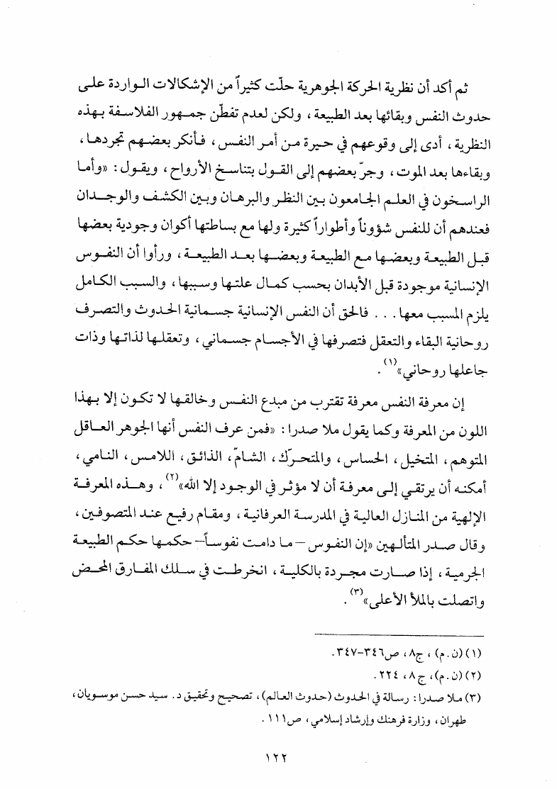 إبداعات صدر الدين الشيرازي الفلسفية ، النفس نموذجاً