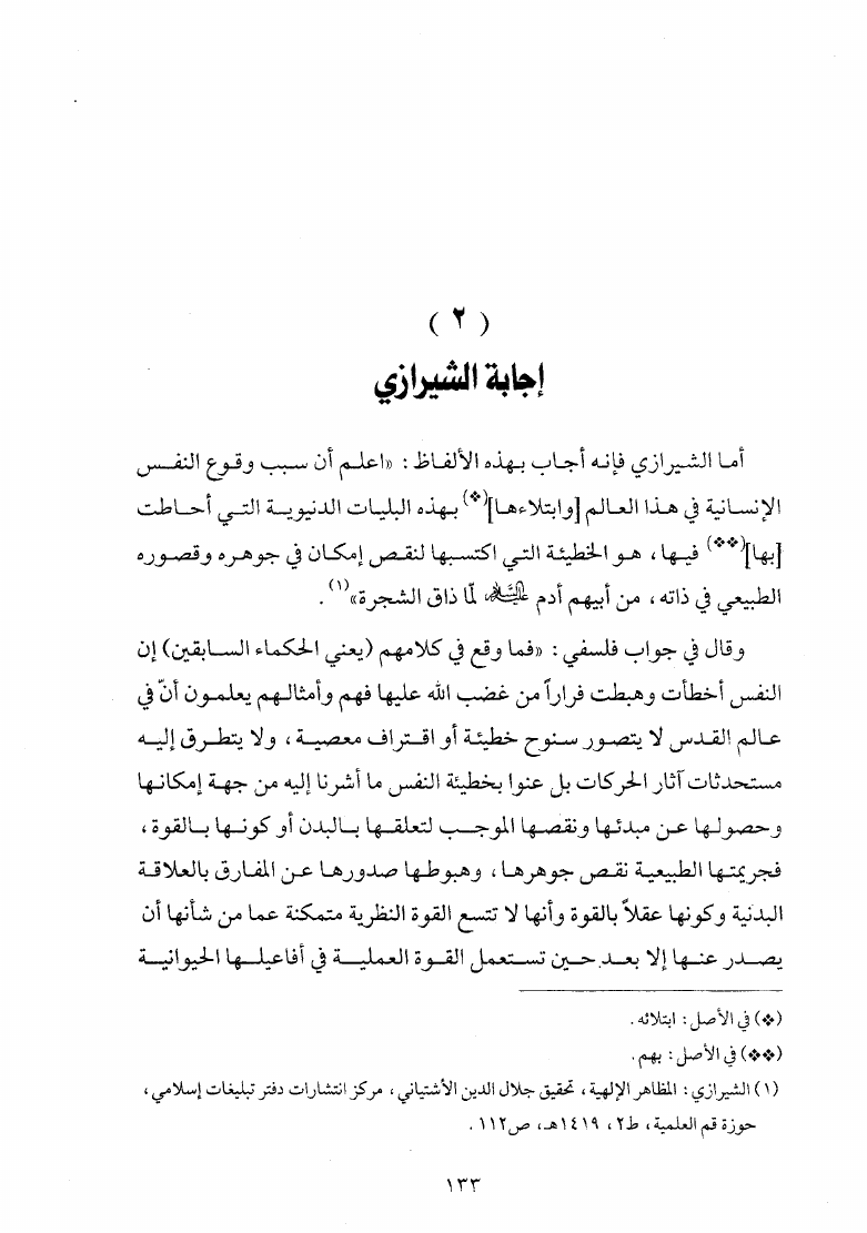 إبداعات صدر الدين الشيرازي الفلسفية ، النفس نموذجاً
