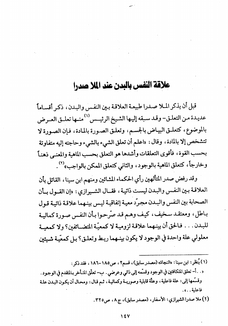 إبداعات صدر الدين الشيرازي الفلسفية ، النفس نموذجاً