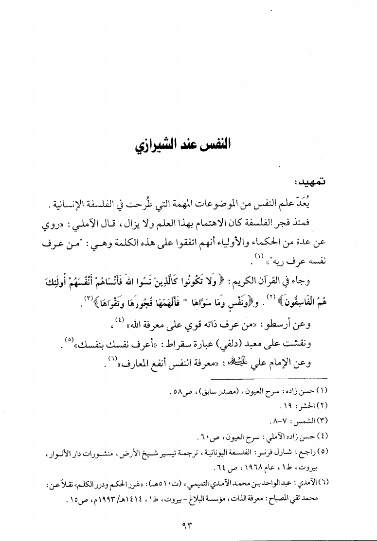 إبداعات صدر الدين الشيرازي الفلسفية ، النفس نموذجاً