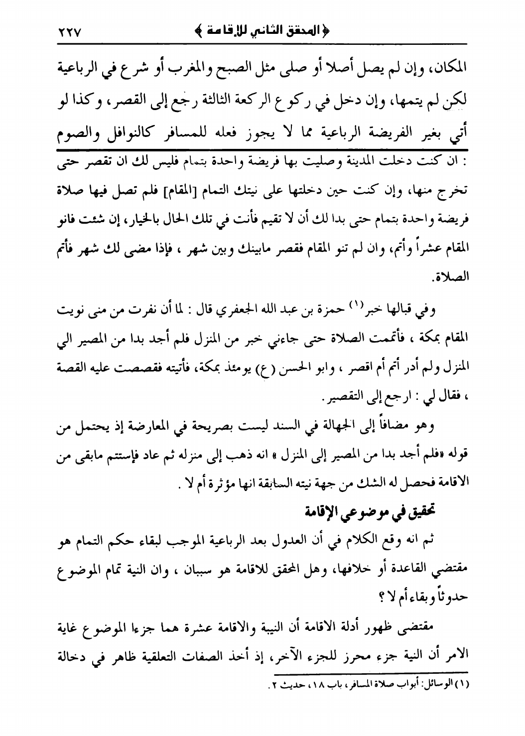 سند العروة الوثقى، صلاة المسافر