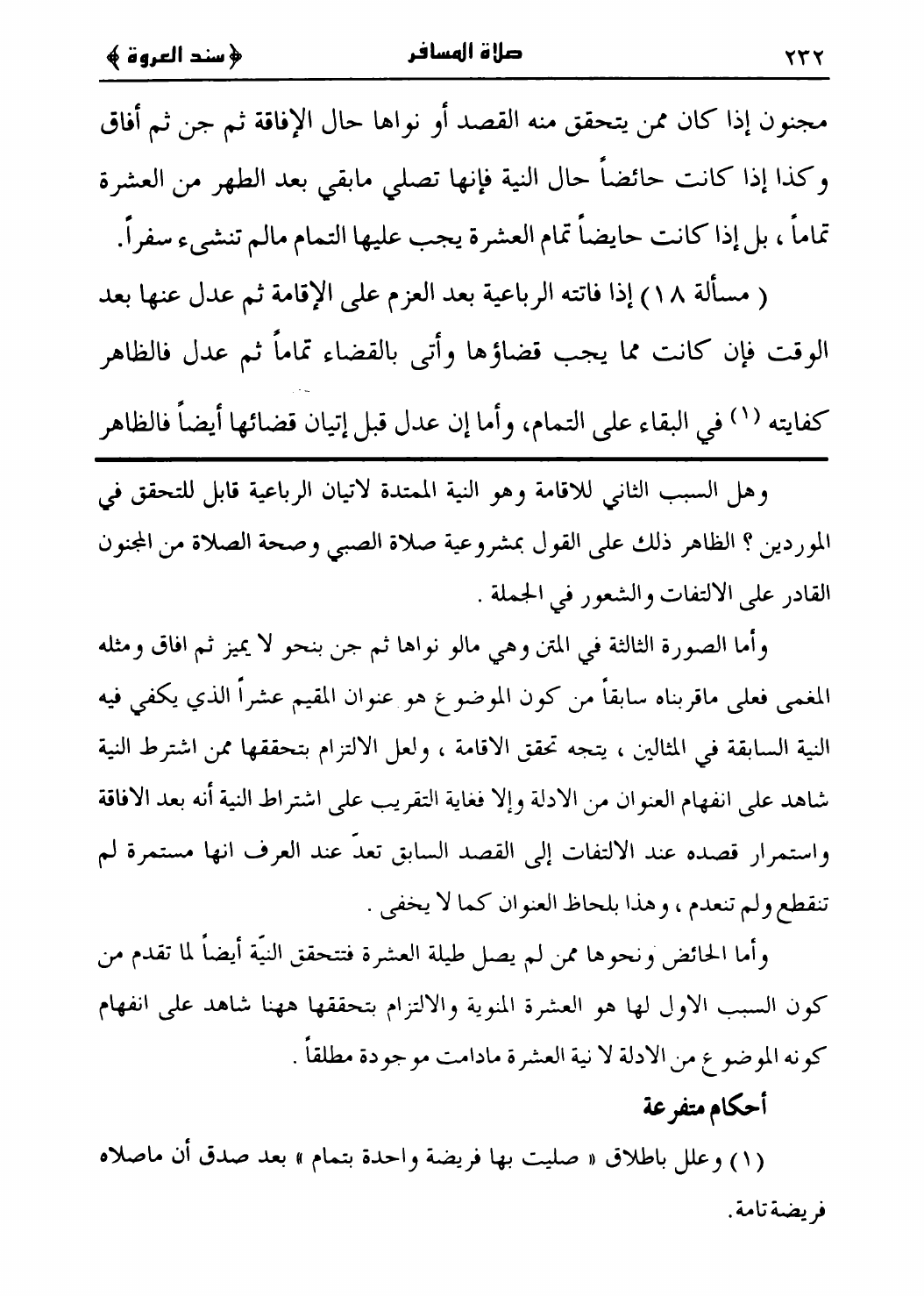 سند العروة الوثقى، صلاة المسافر