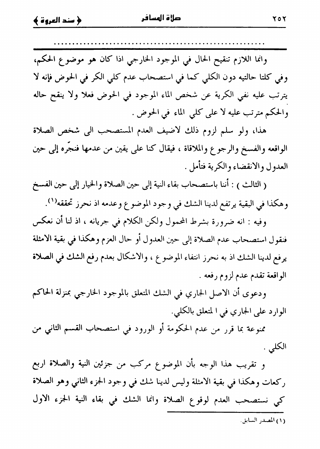 سند العروة الوثقى، صلاة المسافر