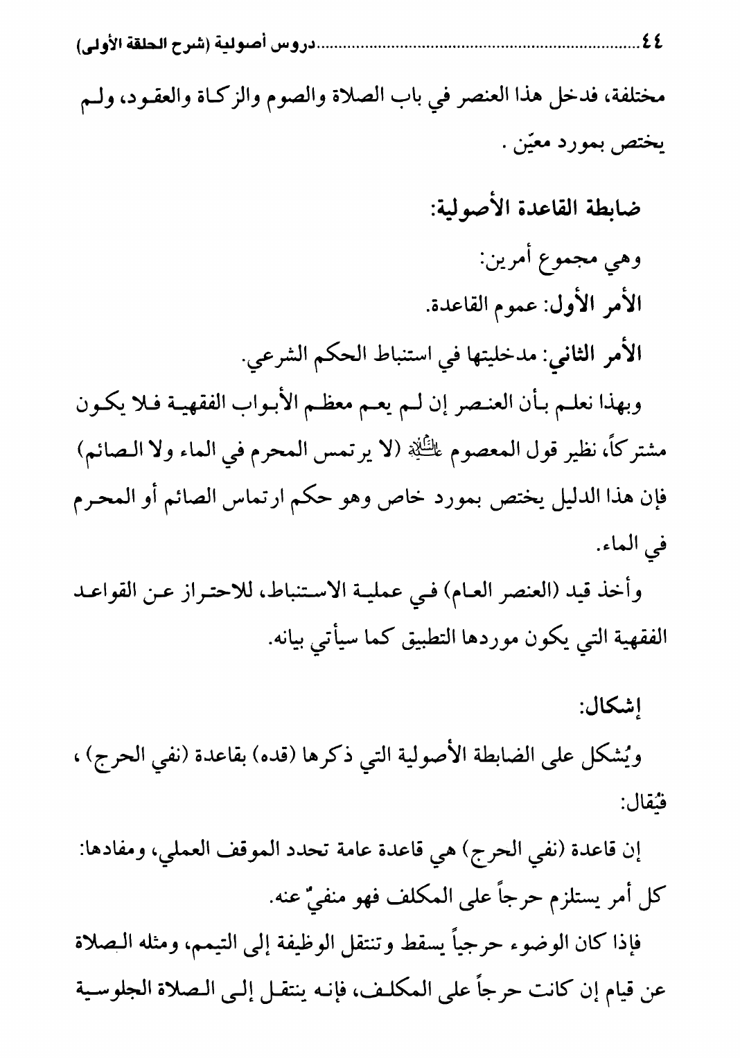 دروس أصولية، شرح كتاب الحلقة الأولى للسيد الصدر