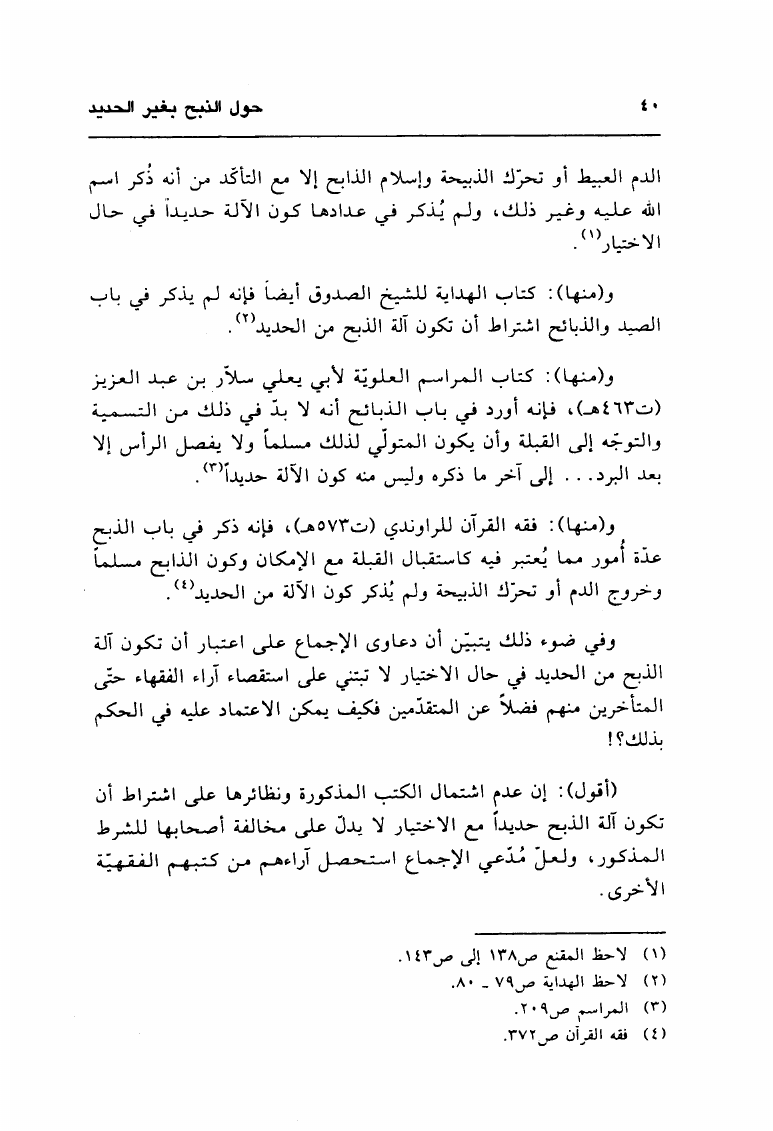بحوث فقهية، حول الذبح بغير الحديد والزي والتجمل ومسائل أخرى