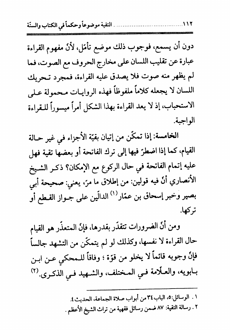 التقية، موضوعاً وحكماً في الكتاب والسنة وتليها قاعدتان فقهيتان