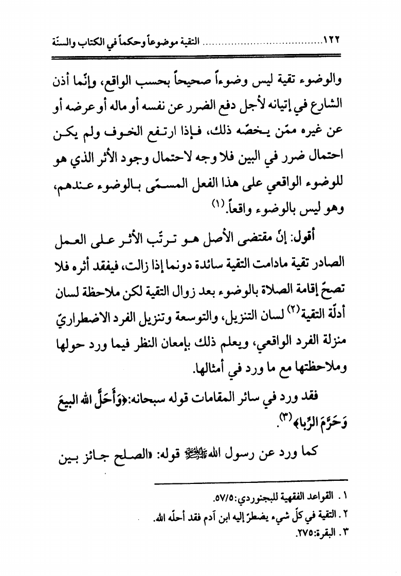 التقية، موضوعاً وحكماً في الكتاب والسنة وتليها قاعدتان فقهيتان