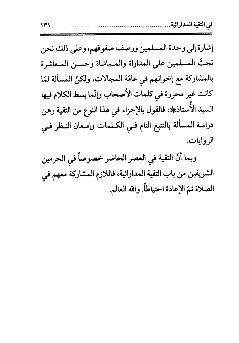 التقية، موضوعاً وحكماً في الكتاب والسنة وتليها قاعدتان فقهيتان