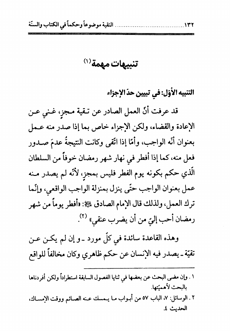 التقية، موضوعاً وحكماً في الكتاب والسنة وتليها قاعدتان فقهيتان