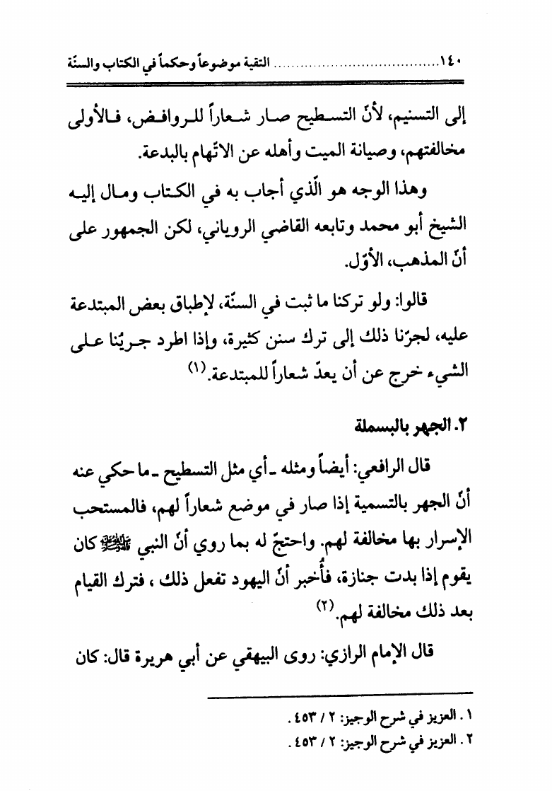التقية، موضوعاً وحكماً في الكتاب والسنة وتليها قاعدتان فقهيتان