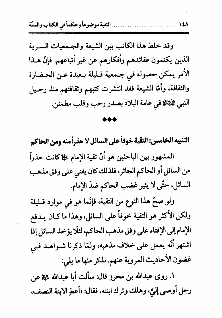 التقية، موضوعاً وحكماً في الكتاب والسنة وتليها قاعدتان فقهيتان