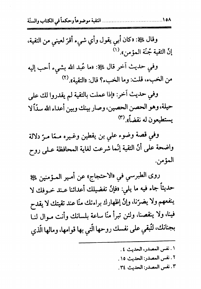 التقية، موضوعاً وحكماً في الكتاب والسنة وتليها قاعدتان فقهيتان