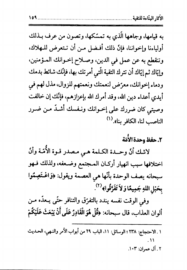 التقية، موضوعاً وحكماً في الكتاب والسنة وتليها قاعدتان فقهيتان
