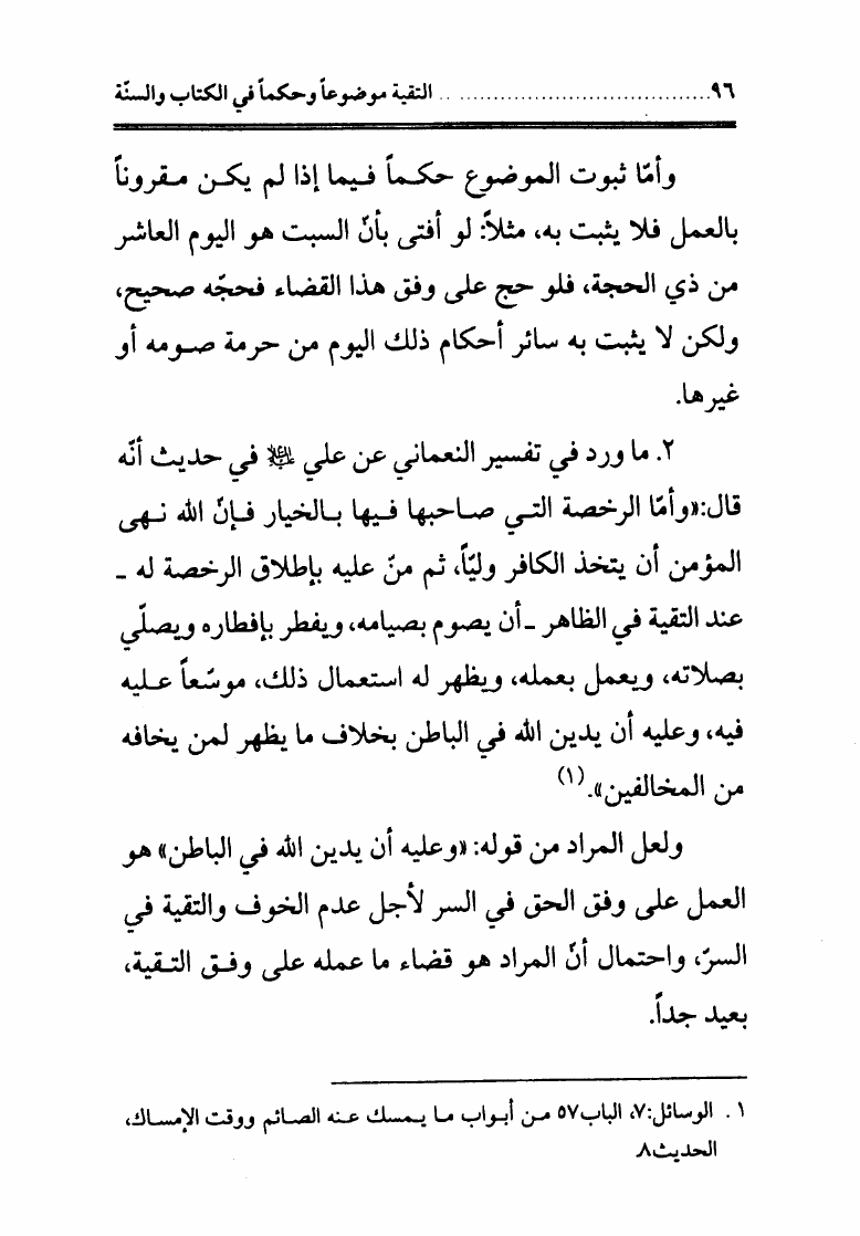 التقية، موضوعاً وحكماً في الكتاب والسنة وتليها قاعدتان فقهيتان