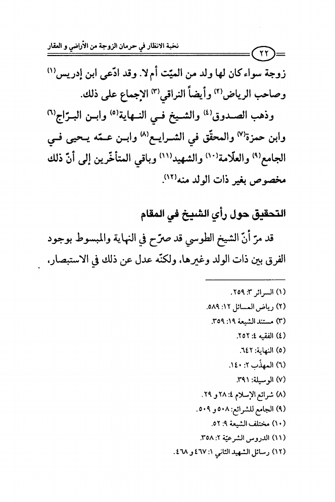 نخبة الأنظار ، في حرمان الزوجة من الأراضي والعقار