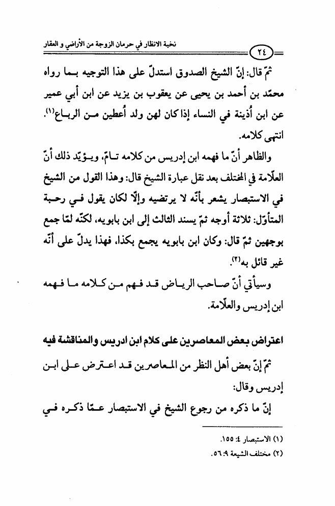 نخبة الأنظار ، في حرمان الزوجة من الأراضي والعقار