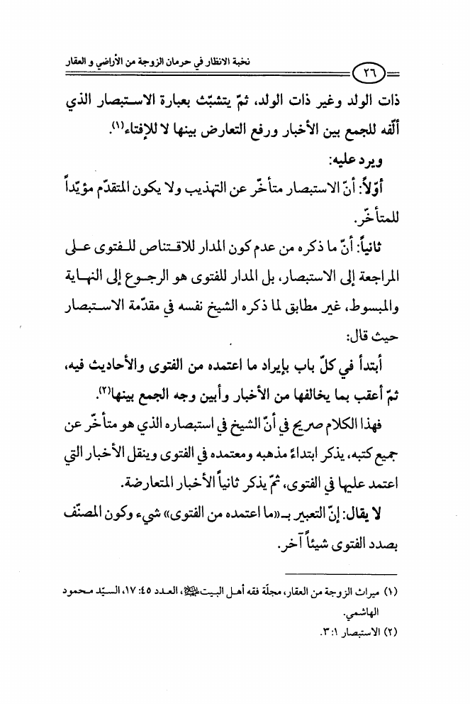 نخبة الأنظار ، في حرمان الزوجة من الأراضي والعقار