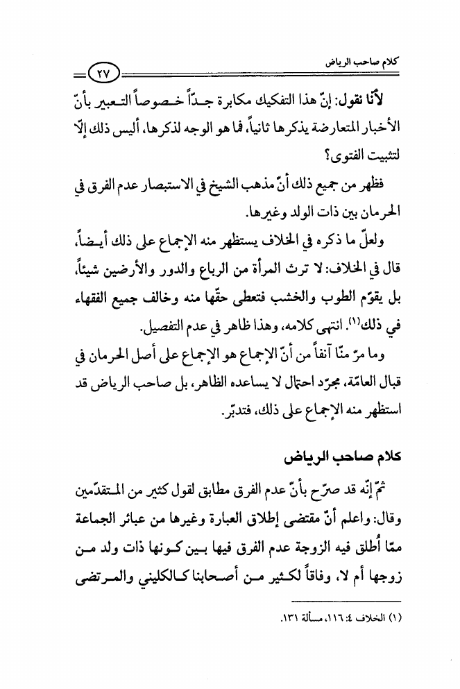نخبة الأنظار ، في حرمان الزوجة من الأراضي والعقار