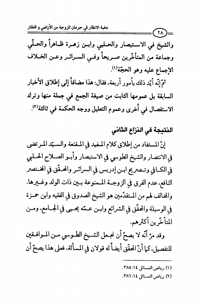 نخبة الأنظار ، في حرمان الزوجة من الأراضي والعقار