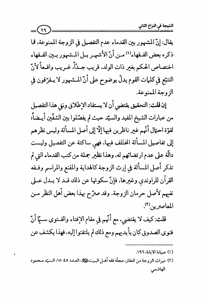 نخبة الأنظار ، في حرمان الزوجة من الأراضي والعقار