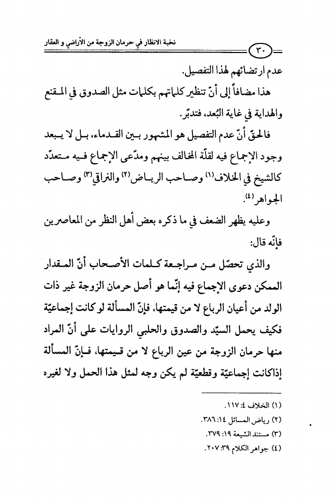 نخبة الأنظار ، في حرمان الزوجة من الأراضي والعقار