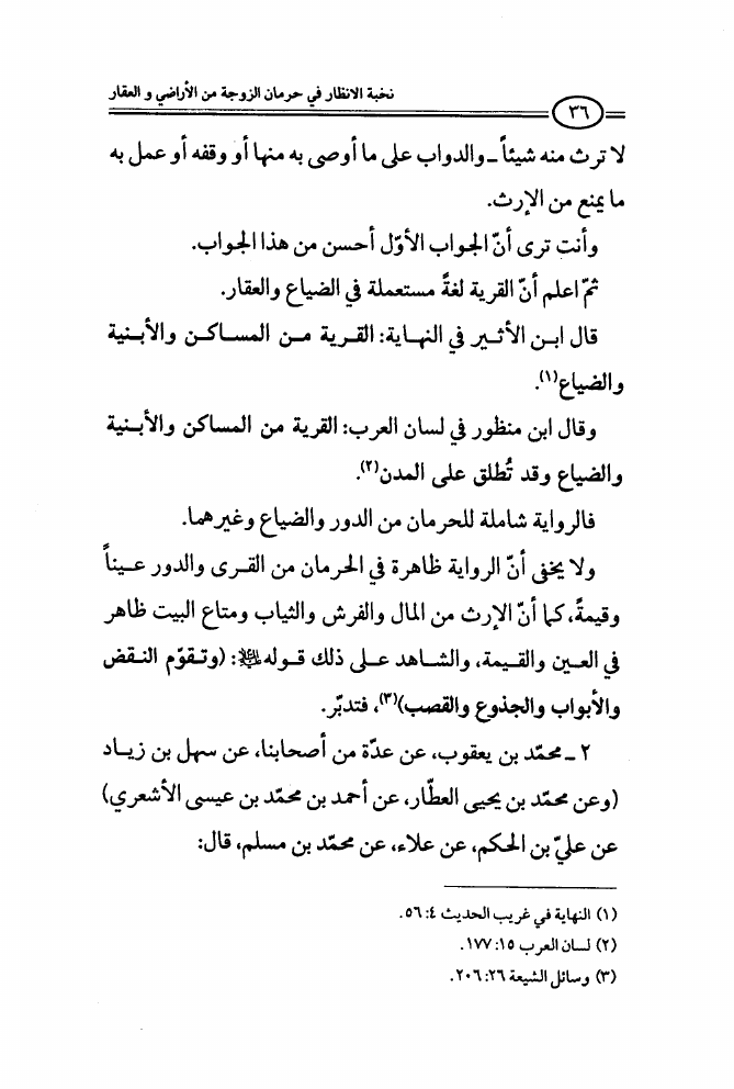 نخبة الأنظار ، في حرمان الزوجة من الأراضي والعقار