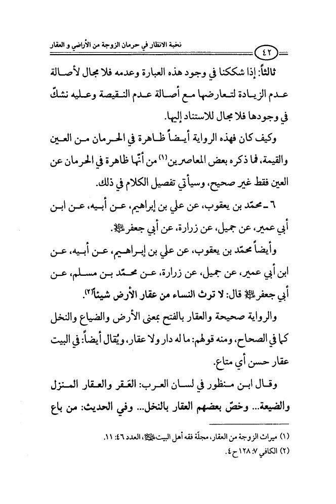 نخبة الأنظار ، في حرمان الزوجة من الأراضي والعقار