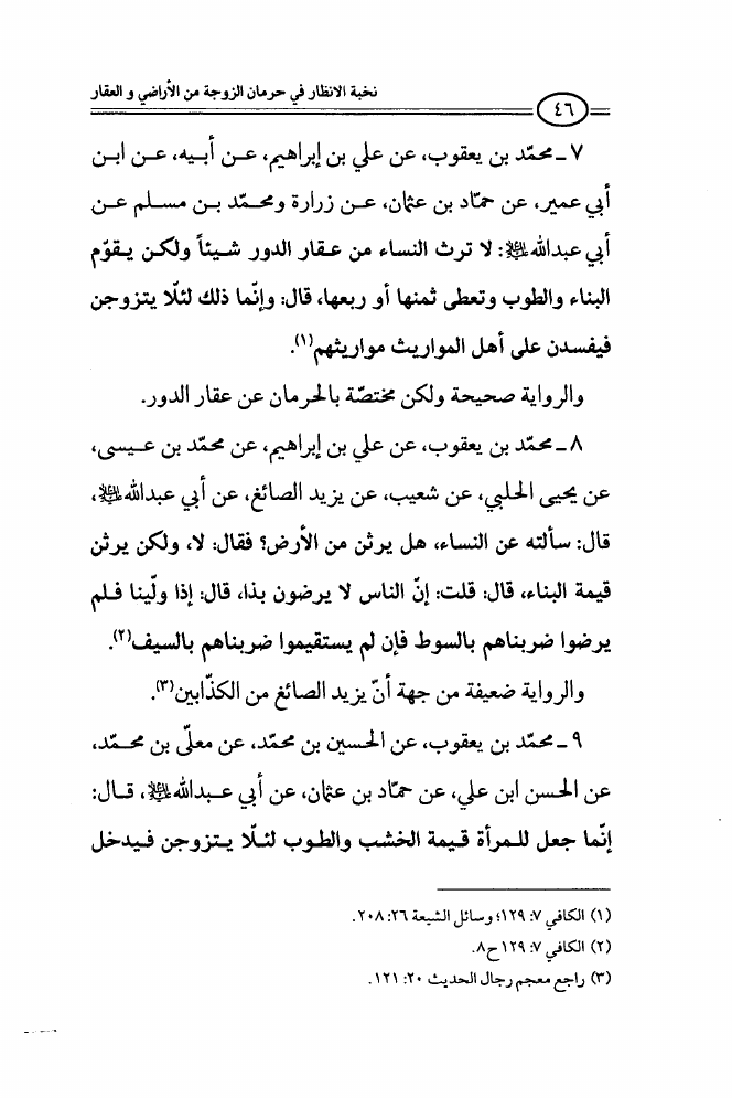 نخبة الأنظار ، في حرمان الزوجة من الأراضي والعقار