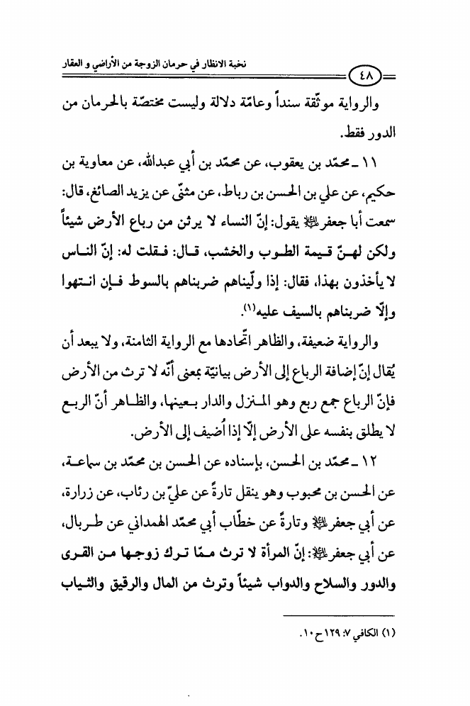 نخبة الأنظار ، في حرمان الزوجة من الأراضي والعقار