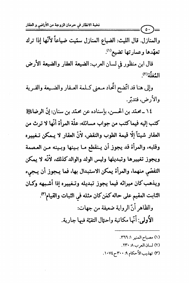 نخبة الأنظار ، في حرمان الزوجة من الأراضي والعقار