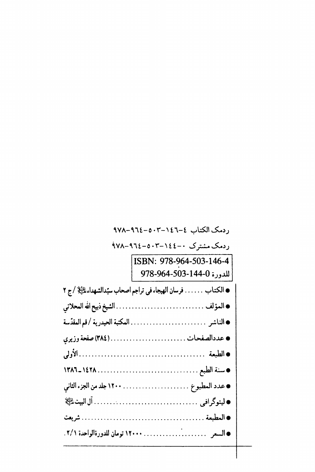 فرسان الهيجاء في تراجم اصحاب سيد الشهداء - ج1 ج2