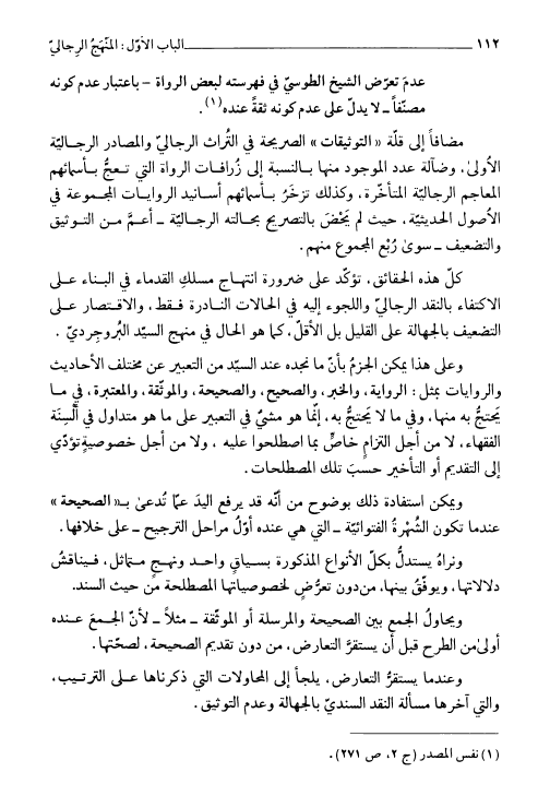 نام کتاب : المنهج الرجالي، والعمل الرائد في الموسوعة الرجالية لسيد الطائفة آية الله العظمى البروجردي نویسنده : السيد محمد رضا الحسيني الجلالي جلد : 1 صفحه : 112