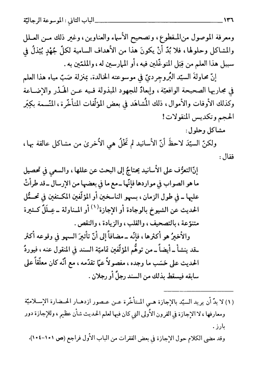 نام کتاب : المنهج الرجالي، والعمل الرائد في الموسوعة الرجالية لسيد الطائفة آية الله العظمى البروجردي نویسنده : السيد محمد رضا الحسيني الجلالي جلد : 1 صفحه : 136