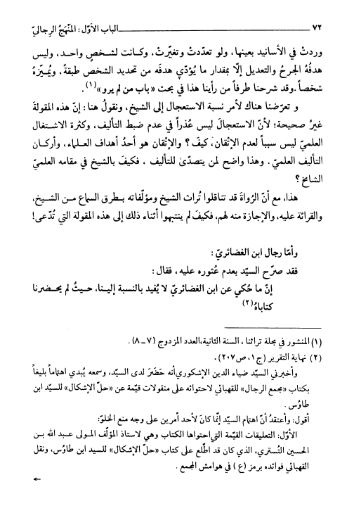 نام کتاب : المنهج الرجالي، والعمل الرائد في الموسوعة الرجالية لسيد الطائفة آية الله العظمى البروجردي نویسنده : السيد محمد رضا الحسيني الجلالي جلد : 1 صفحه : 72