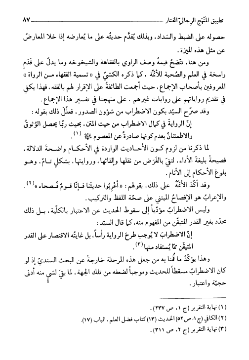نام کتاب : المنهج الرجالي، والعمل الرائد في الموسوعة الرجالية لسيد الطائفة آية الله العظمى البروجردي نویسنده : السيد محمد رضا الحسيني الجلالي جلد : 1 صفحه : 87